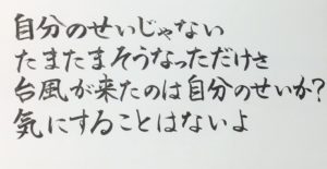 自分のせいじゃない。たまたまそうなっただけさ。台風が来たのは自分のせいか?気にすることはないよ